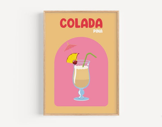Pina Colada cocktail print | bright retro cocktail poster | kitchen art