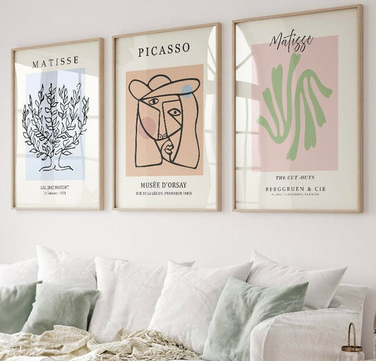 Set of 3 Henri Matisse prints | Picasso gallery wall artwork | pastel exhibition posters | famous artists