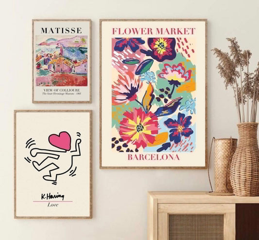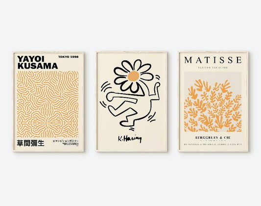 Set of 3 Matisse, Keith Haring and Yayoi Kusama prints | Wall art | yellow prints | yellow posters | colourful
