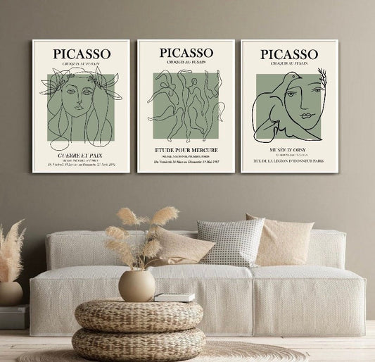 Set of 3 Picasso prints | sage green Picasso exhibition posters | famous artist prints