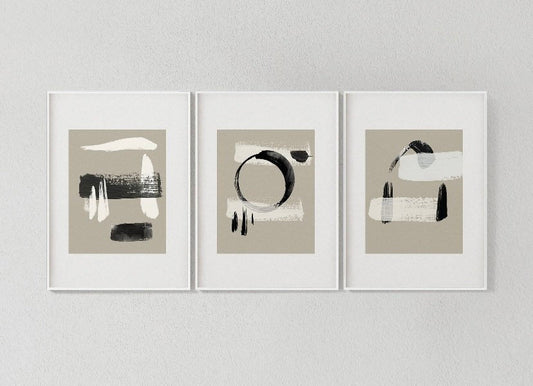 Japandi Nordic Black and Beige Abstract Print Set