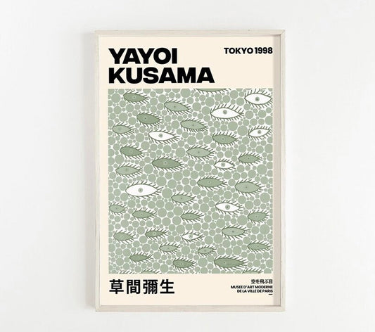 Yayoi Kusama Set of 3 Prints | Gallery Wall Set | Sage green print set | Exhibition Wall Art | Japanese Poster Set | Exhibition Wall Set