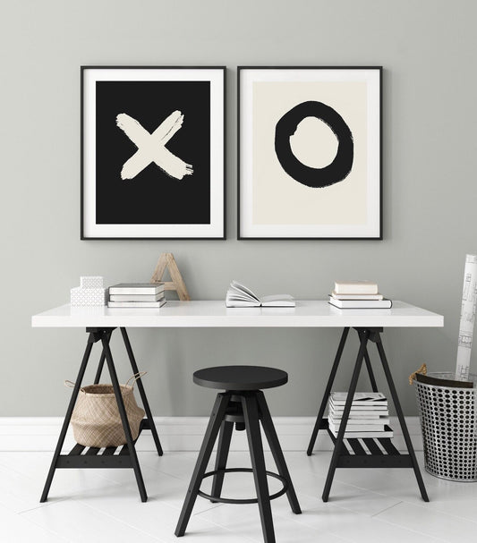 Mid Century Black and Beige Rainbow and Moon Print Set