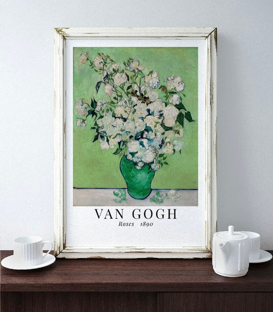 Van Gogh and Monet Green Exhibition Prints | Prints Set of 2 | Van Gough Roses Print | Monet Waterlilies Print | Museum Art | Famous Artist